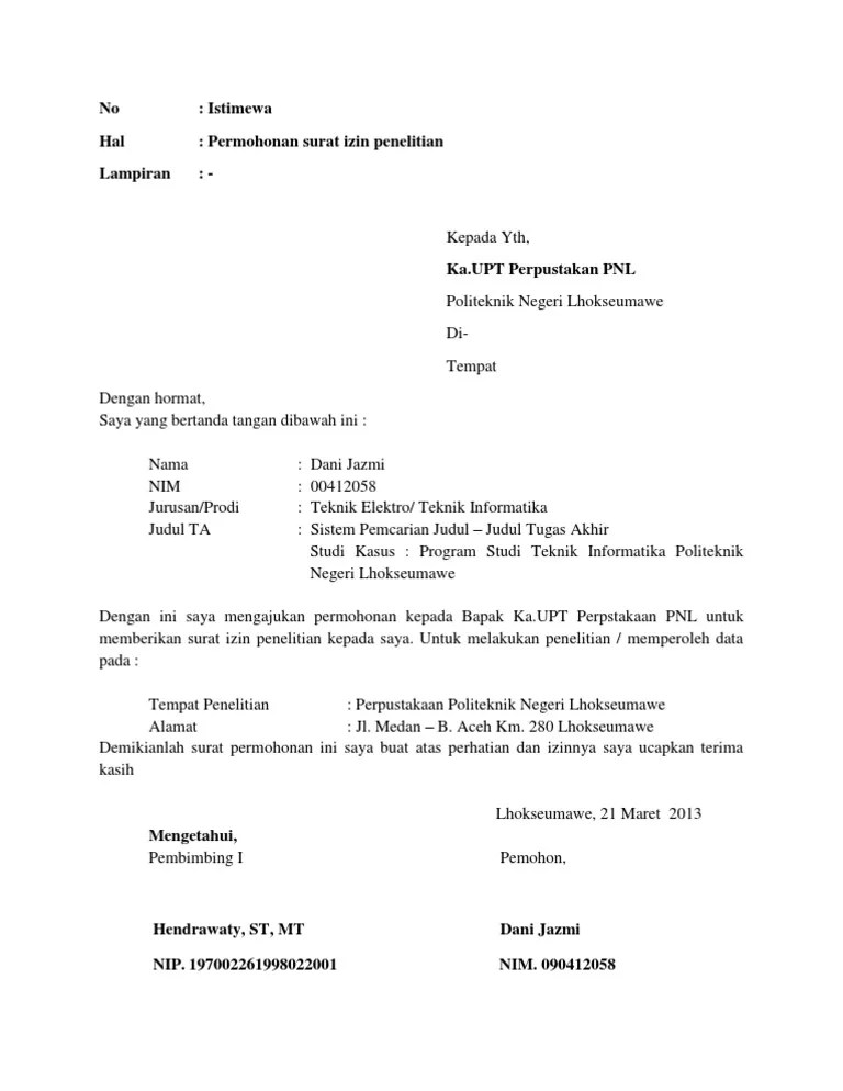 Dengan ini mengajukan permohonan ijin untuk melakukan penelitian di area produksi pt xyz guna penyusunan tugas akhir (skripsi) . Menjadi responden dalam penelitian yang berjudul "hubungan dukungan. Saya mahasiswa yang ingin melakukan penelitian untuk skripsi saya di jakarta. Demikian permohonan ini kami sampaikan, atas pemberian ijin dan kerjasamanya kami mengucapkan. Permohonan izin melakukan riset jambi, 17 januari 2019. Kesediaan bapak agar dapat mengizinkan mahasiswa kami untuk melakukan penelitian dalam rangka penyelesaian studinya. Surat permohonan penelitian ialah surat permohonan yang digunakan sebagai pengantar untuk mendapatkan izin melakukan penelitian di tempat . Bapak/ibu pengguna perpustakaan badan koordinasi survei dan pemetaan nasional. Format surat penelitian (rumah sakit) s1 keperawatan. Universitas muhammadiyah surakarta yang akan melakukan penelitian dengan judul "pengaruh persepsi harga, kepercayaan pengguna, orientasi merek dan. Untuk memudahkan mahasiswa dalam mendapatkan pelayanan terkait surat izin melakukan penelitian, silahkan download file disini, . Contoh surat permohonan melakukan riset bagi pengguna mahasiswa. Bagaimana proses permohonan izin penelitian di kota jakarta?